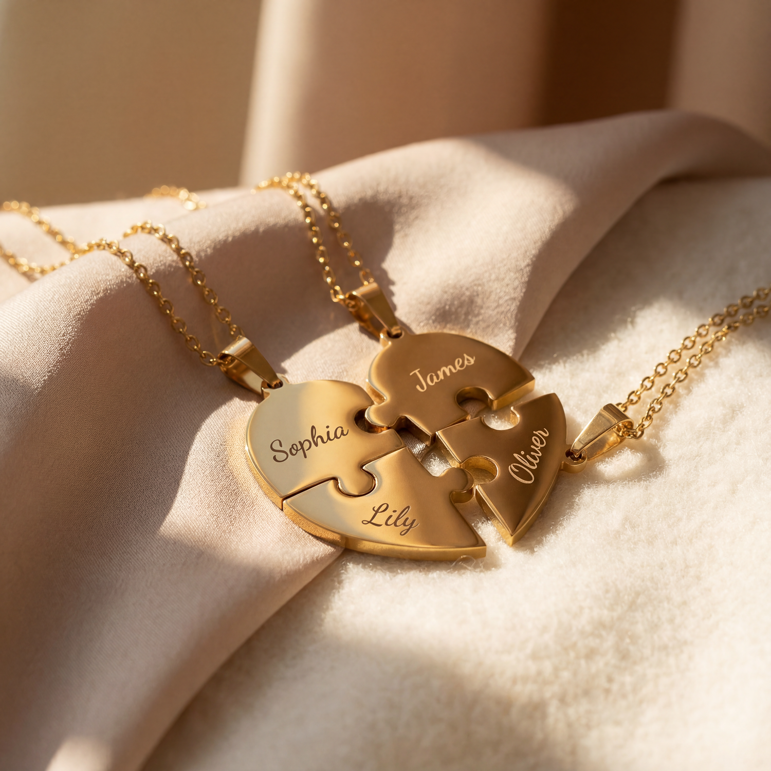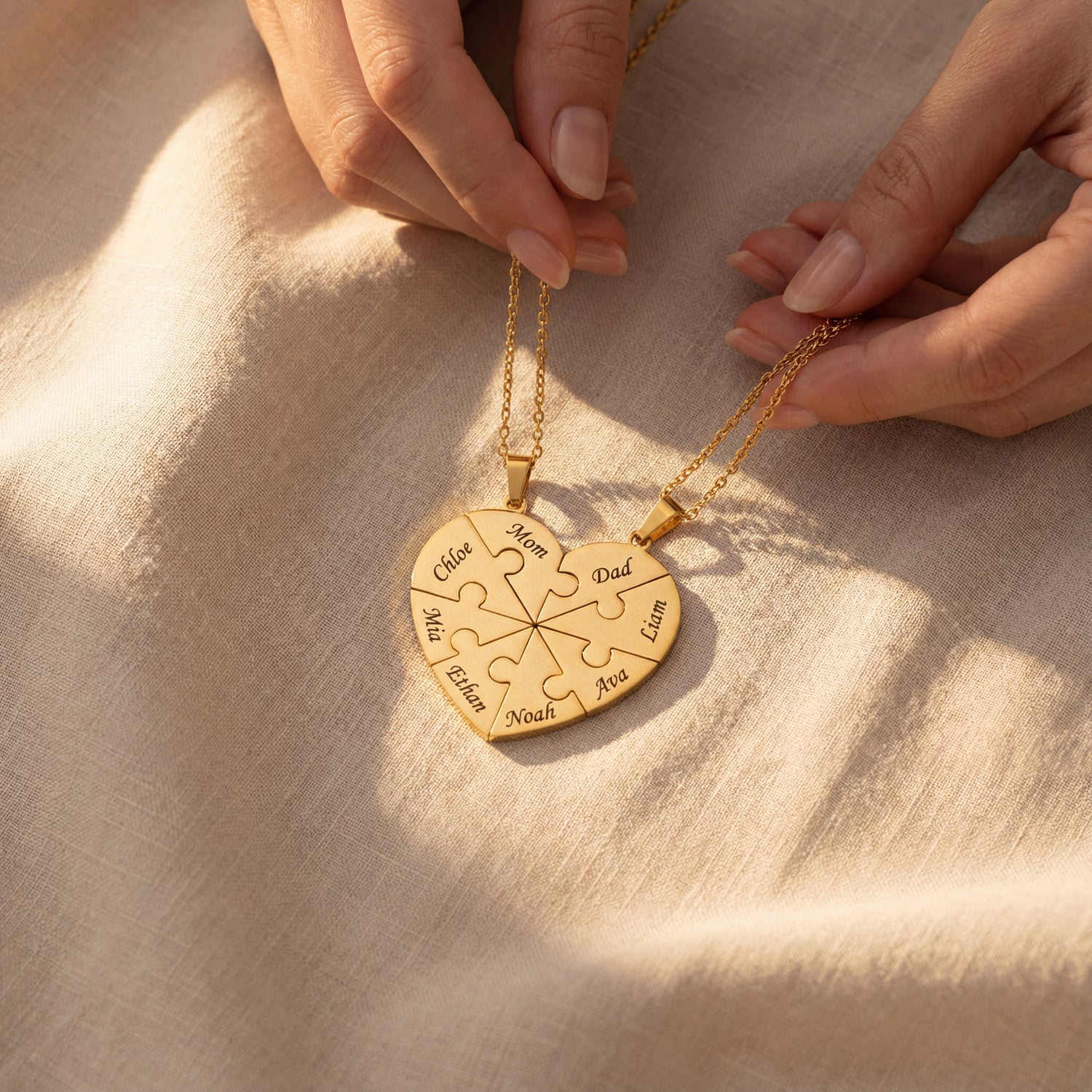 Le collier Héritia™ Puzzle Cœur n’est pas un simple bijou — c’est un lien unique entre les personnes qui comptent vraiment.